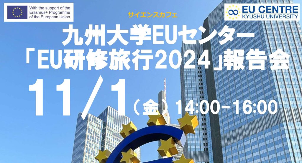 (FINISHED) Kyushu University EU Centre 'EU Study Tour 2024' Debriefing Session ■Date: 1 November 2024 (Friday)■Time: 14:00-16:00 (registration opens at 13:45)■Venue: Kyudai Ito Tsutaya Art LoungeAddress: Ito Lab+, 5-1, Kyudai Shinmachi, ... -
