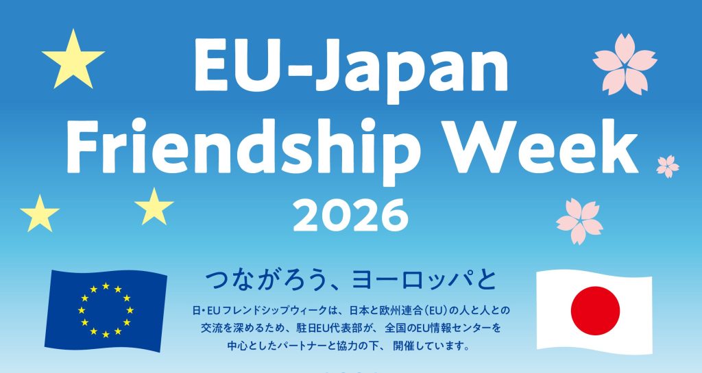 日・EUフレンドシップウィーク2026『つながろう、ヨーロッパと』が始まります。各地で催される様々な関連プログラムをご紹介します。 日・EUフレンドシップウィークは、日本と欧州連合(EU)の人と人との交流を深めるため、駐日EU代表部が、全国のEU情報セ... -